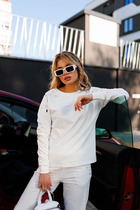Джемпер в овсяном оттенке выполнен из уютной пряжи крупной вязки с ангорой и легким пушистым мохером. Модель с фактурным узором косы очень приятная на ощупь, в которую хочется укутаться. Отлично согревает, а свободный силуэт позволяет носить изделие на футболку или рубашку. Из украшений металлический логотип бренда.