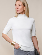 Джемпер в овсяном оттенке выполнен из уютной пряжи крупной вязки с ангорой и легким пушистым мохером. Модель с фактурным узором косы очень приятная на ощупь, в которую хочется укутаться. Отлично согревает, а свободный силуэт позволяет носить изделие на футболку или рубашку. Из украшений металлический логотип бренда.