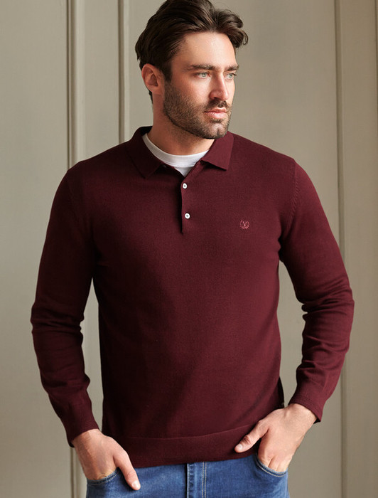 Заказать 22.03 Vilatte Джемпер-поло из хлопка с нейлоном U39.017 бургунди