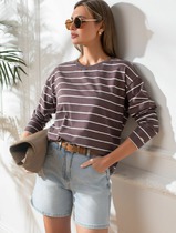 Vilatte Джемпер с прозрачными рукавами D29.278 коричневый-бежевый змея