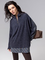 Джемпер с вырезом лодочкой и прозрачными рукавами создает женственный и элегантный образ. Тело джемпера черного цвета выполнено из плотного вискозного трикотажа, обеспечивающего комфорт, в то время как рукава из тонкой сетки создают стильный контраст. Глубокий вырез лодочка подчеркивает линию плеч и создает элегантный силуэт. Идеальный выбор для стильных образов!