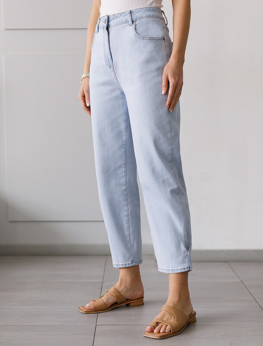 Джинсы с легкой стиркой выполнены из эластичного денима. Укороченная модель с пятью карманами и брендированным патчем на поясе. За счет эластана изделие хорошо тянется и гарантирует комфорт и формоустойчивость. Подходит для любой фигуры.