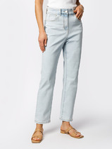За счет универсального кроя - плотное прилегание в верхней части и свобода внизу, джинсы эффектно подчеркивают фигуру, не акцентируя внимания на недостатках. Модный силуэт джинс придает новизну и актуальность образу, даже в комплекте с базовой футболкой. На джинсах заглажены легкие стрелки спереди и сзади по центру ноги.