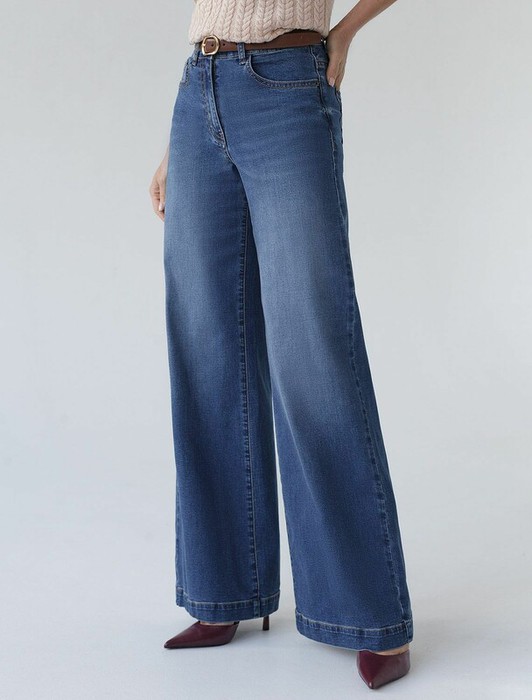 — 27.03 Vilatte Джинсы трубы прямые с декоративной стиркой из эластичного денима