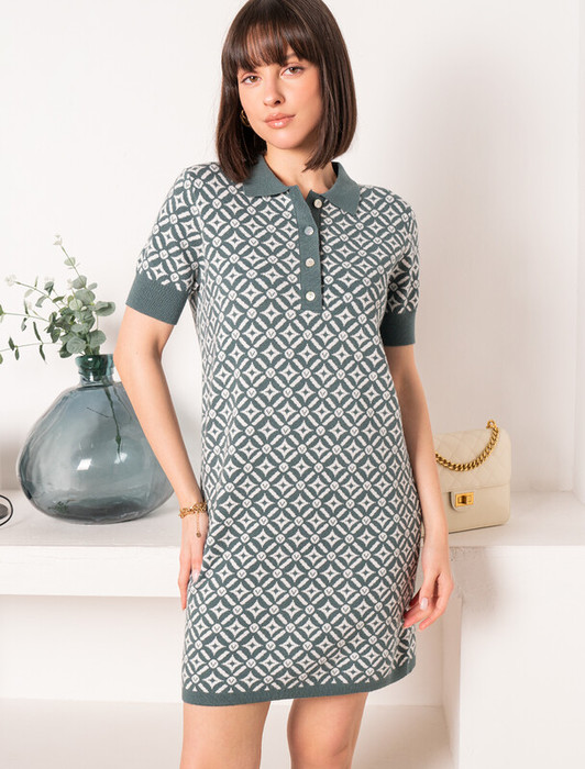 — 22.03 Vilatte Эластичное платье тонкой жаккардовой вязки D32.101 полынный