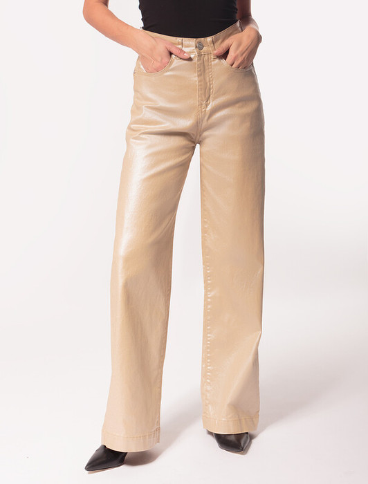 Джинсы выполнены из эластичного денима с легким металлизированным покрытием. Супер-трендовая модель свободного кроя с высокой посадкой на талии. Цвет бежевой фольги с мягким жемчужным сиянием подходит любому цветотипу и сочетается со множеством других оттенков верхов. Плотная ткань хорошо держит форму не сковывая движений.
