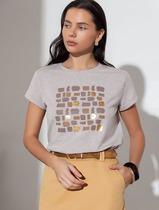 Vilatte Футболка с принтом свободная эластичная из премиального хлопка D49.136 ч