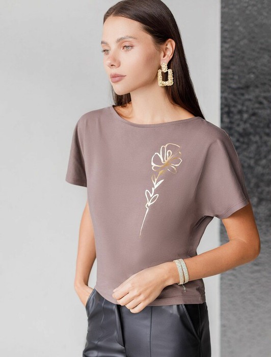 Vilatte Футболка D49.133 кофейный_цветок