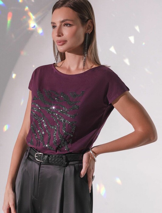 Совместные покупки Уфа Женская одежда Футболки — Vilatte Футболка D49.134 бургунди_зебра