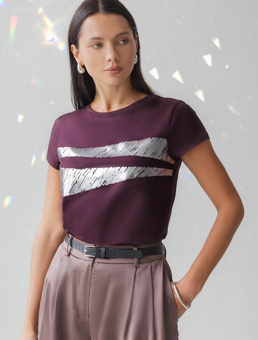 Совместные покупки Уфа Женская одежда Футболки — 27.03 Vilatte Футболка D49.135 бургунди_штрихи