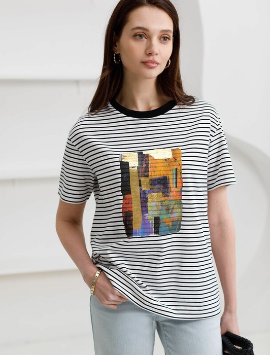 Vilatte Футболка D49.145 белый-черный_абстракция