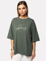 Vilatte Футболка свободного кроя с авторским принтом D49.082 т.оливковый_dreams