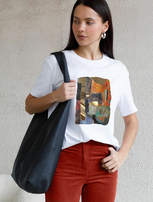 Совместные покупки Уфа Женская одежда Футболки — Vilatte Футболка D49.145 белый_абстракция