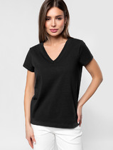 Совместные покупки Уфа Женская одежда Футболки — Vilatte Футболка из эластичного хлопка с принтом стразы D49.097 т.синий_блики