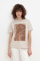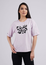Футболка выполнена из премиального хлопка.Принт "леопард" нанесен фактурными красками с устойчивым покрытием. Наличие эластана в составе гарантирует комфорт и формоустойчивость. Изделие дополнено фирменным металлическим логотипом бренда.
