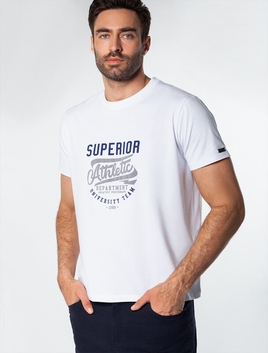 Совместные покупки Уфа Мужская одежда Футболки — Vilatte Футболка из премиального хлопка с авторским принтом U49.026 белый_athlet