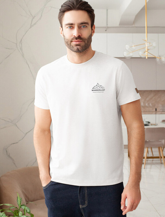 Совместные покупки Уфа Мужская одежда Футболки — Vilatte Футболка из премиального хлопка с авторским принтом U49.045 белый_wander