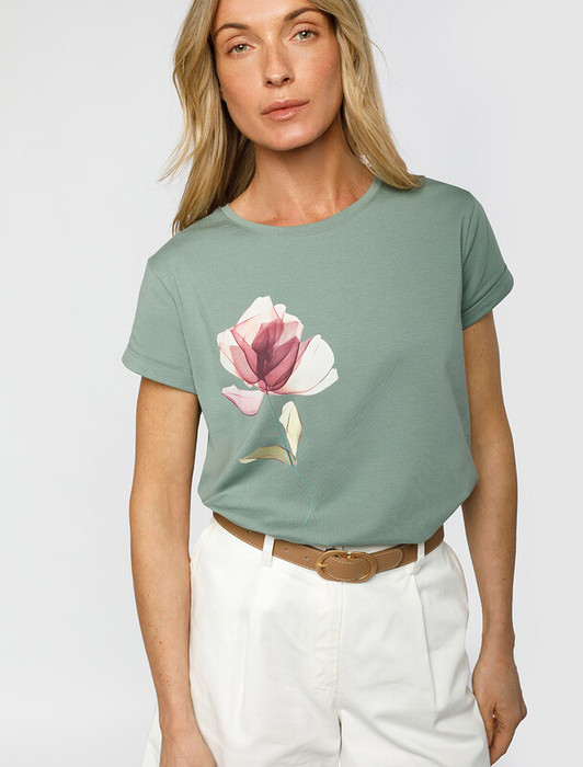 Совместные покупки Уфа Женская одежда Футболки — Vilatte Футболка из премиального хлопка с эластаном D49.097 св.оливковый_цветок