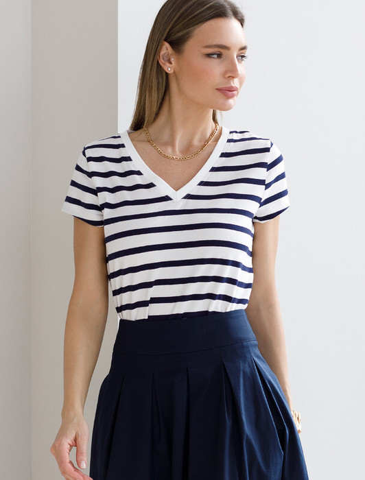 Vilatte Футболка из премиального хлопка с эластаном D49.982 белый-т.синий полоса