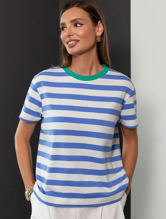 Заказать Vilatte Футболка из премиального хлопка с эластаном D49.989 белый-васильковый