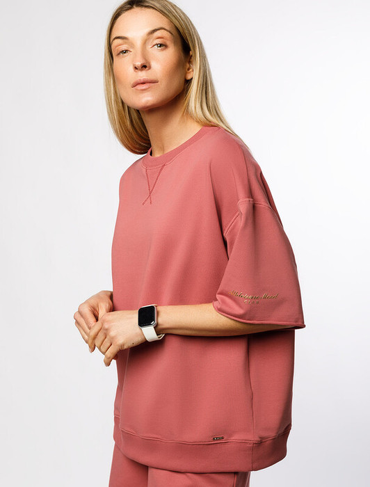 Футболка свободного кроя со спущенным плечом выполнена из футера двухнитки с эластаном. Лаконичный принт нанесен фактурной краской. Эластичный материал гарантирует комфорт и формоустойчивость. Сочетается в костюме с брюками D44.138, D44.139 и шортами D48.008. Изделие дополнено металлическим логотипом бренда.