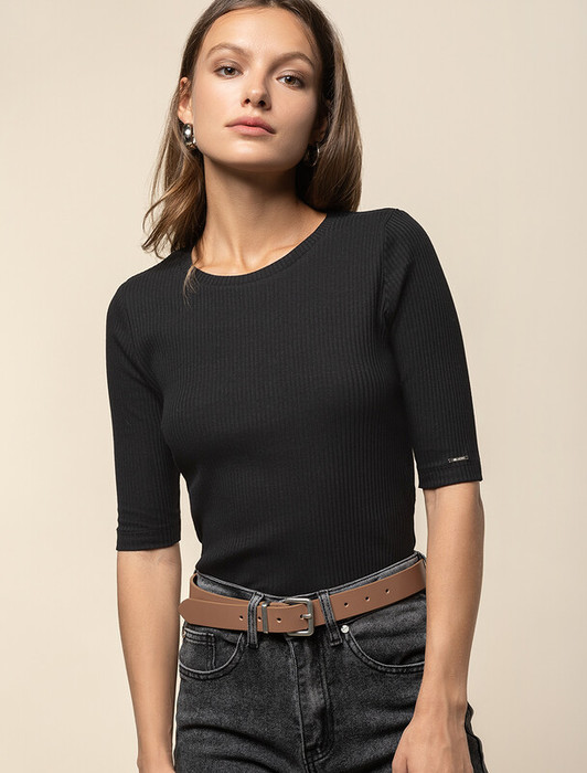Футболка выполнена из фактурного трикотажа в широкий рубчик. Модель идеально сидит по фигуре не сковывая движения. Хлопковый трикотаж поддерживает оптимальную температуру тела, поэтому в изделии будет комфортно в течении всего дня. Наличие эластана в составе гарантирует формоустойчивости. Базовая модель впишется в любой гардероб.