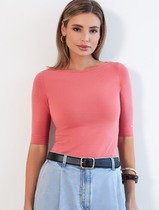 Футболка выполнена из трикотажа в широкий рубчик. Базовая модель с круглым вырезом и рукавом до локтя. Эластичный хлопковый трикотаж сидит по фигуре, не сковывает движений и очень комфортный в носке. Фактура вертикальных полос визуально стройнит и вытягивает силуэт. Базовое изделие хорошо впишется в любой гардероб. Идеально подходит для многослойных образов в базовый гардероб.