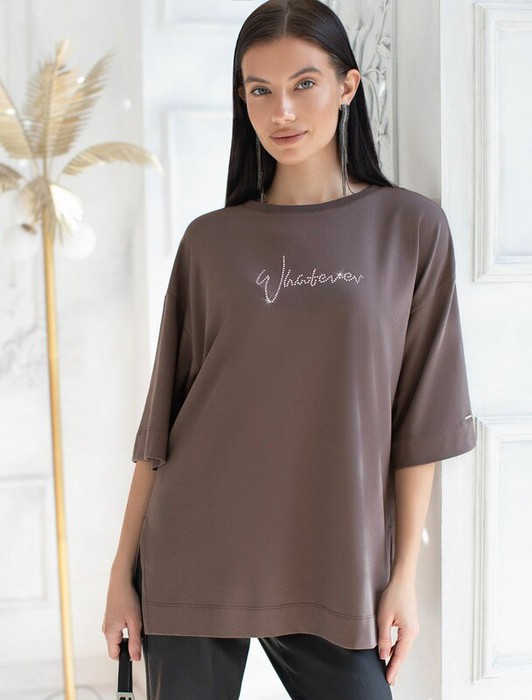 Такая эффектная длинная футболка станет универсальным дополнением гардероба, позволяя создавать разнообразные образы с акцентом на современный стиль и утонченность деталей. Благодаря стильному дизайну с боковыми разрезами эта футболка станет идеальным вариантом для создания легких и непринужденных луков.
