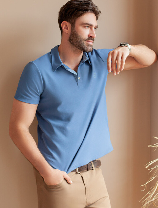 Совместные покупки Уфа Мужская одежда Футболки — Vilatte Футболка-поло из фактурного трикотажа U49.047 св.синий