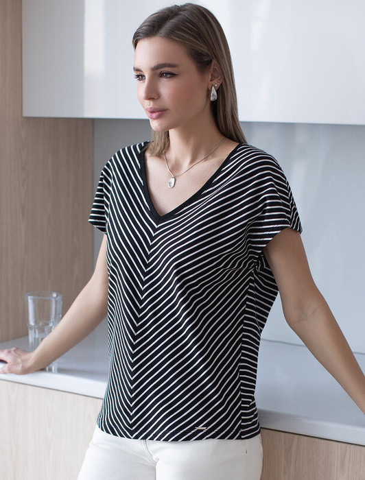 Заказать Vilatte Футболка с цельнокроеным рукавом D49.069 черно-белый