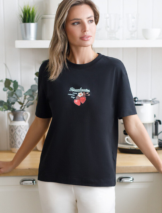 Совместные покупки Уфа Женская одежда Футболки — Vilatte Футболка с принтом свободная эластичная из премиального хлопка D49.136 ч