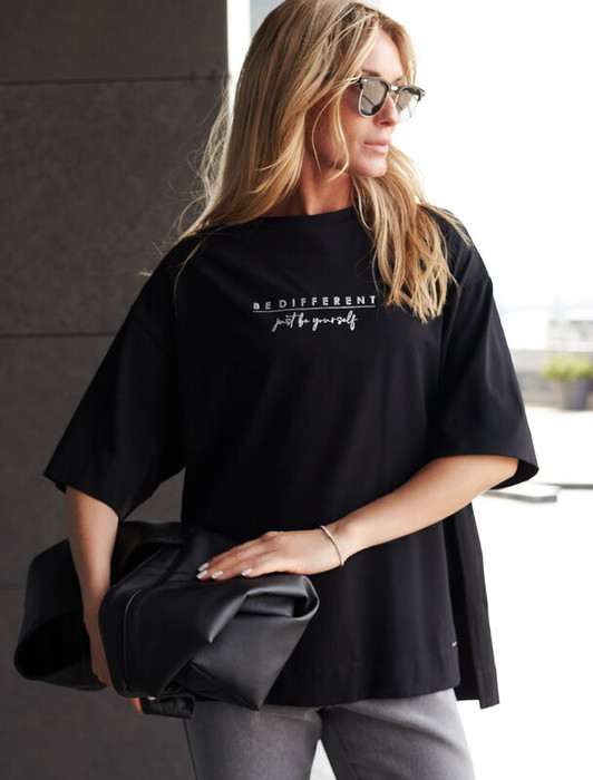 Совместные покупки Уфа Женская одежда Футболки — Vilatte Футболка свободного кроя с авторским принтом D49.082 черный_be_different
