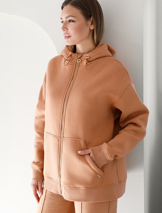 Худи на молнии выполнено из премиального футера трехнитки с теплым начесом. Модель дополнена боковыми карманами и золотистой фурнитурой, что поддерживает актуальный стиль спорт-шик. Свободный крой подходит для любой фигуры. Ранней осенью или поздней весной можно носить в качестве верхней одежды. Сочетается в костюме с брюками D44.133