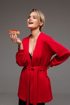 Удлиненный кардиган выполнен из мягкой меланжевой пряжи с добавлением кашемира. Классическая модель с глубоким вырезом прямого силуэта идеально сочетается как с брюками, юбками, джинсами, так и с платьями. Застежка на пуговицы. Изделие очень приятное к телу, совершенно не колется и отлично сохраняет тепло. Сочетается в костюме с брюками D38.013, D38.012 и юбкой D36.016