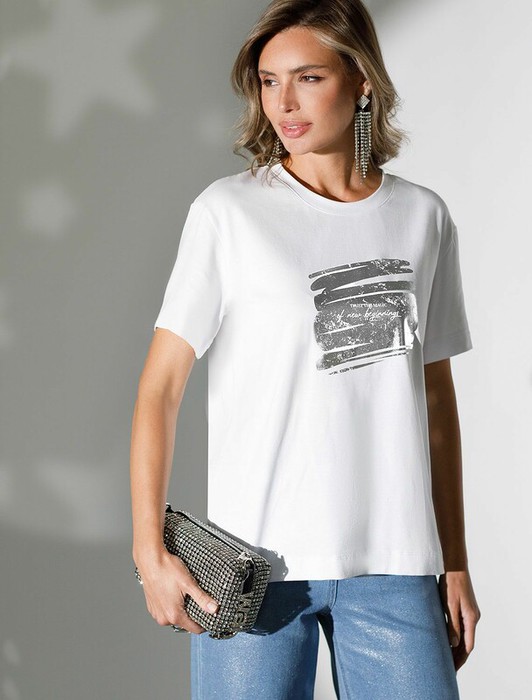 Совместные покупки Уфа Женская одежда Футболки — 27.03 Vilatte Нарядная футболка с принтом фольгой из премиального хлопка с элас