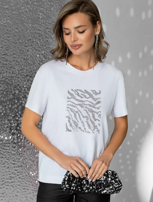 Совместные покупки Уфа Женская одежда Футболки — 27.03 Vilatte Нарядная футболка с принтом фольгой из премиального хлопка с элас