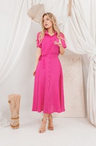 Лаконичное платье сшито из эластичного крепа. Достаточно сдержанный вырез горловины хорошо комбинирует с цельнокроеным рукавом и мягкой драпировкой на плече. На спинке застежка из двух пуговиц. Ткань почти не мнется и хорошо держит форму. В подарок идет ремешок из эко-кожи.