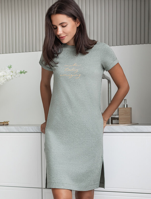 Домашнее платье выполнено из премиального хлопка с авторским принтом. Weekend vibes - настрой на выходные. Изделие приятно ощущается на теле, а разрезы по бокам обеспечивают удобную посадку не сковывая движений. Наличие эластана в составе изделия способствует формоустойчивости и меньшей сминаемости.
