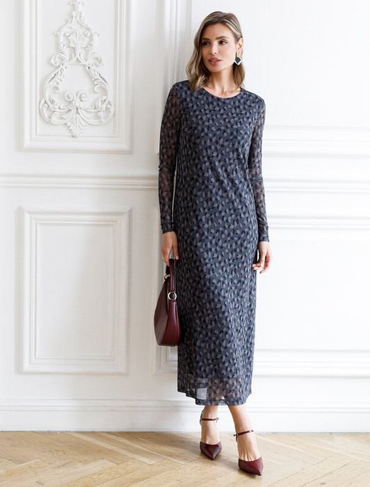 Совместные покупки Уфа Женская одежда Платья — Vilatte Платье из сетки с подкладкой D22.238 серый-коричневый