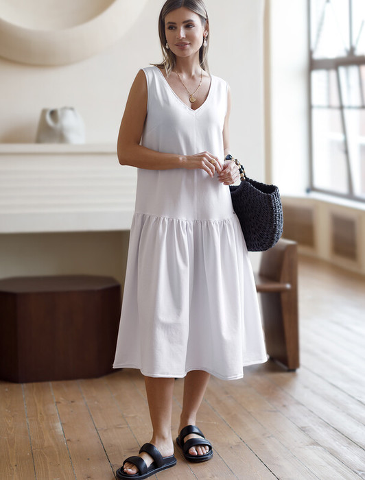 Совместные покупки Уфа Женская одежда Платья — Vilatte Платье из тонкого футера с открытыми срезами D42.088 белый
