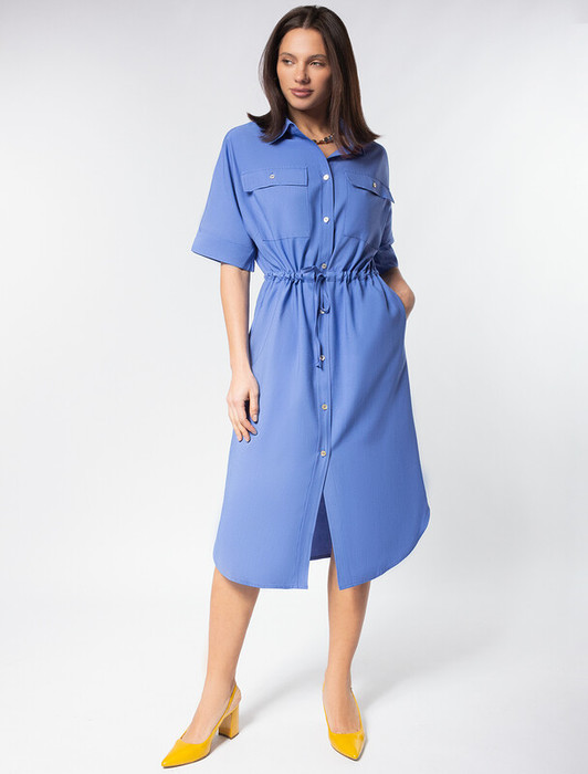 Совместные покупки Уфа Женская одежда Платья — 27.03 Vilatte Платье-рубашка из плотного лиоцелла D22.209 васильковый