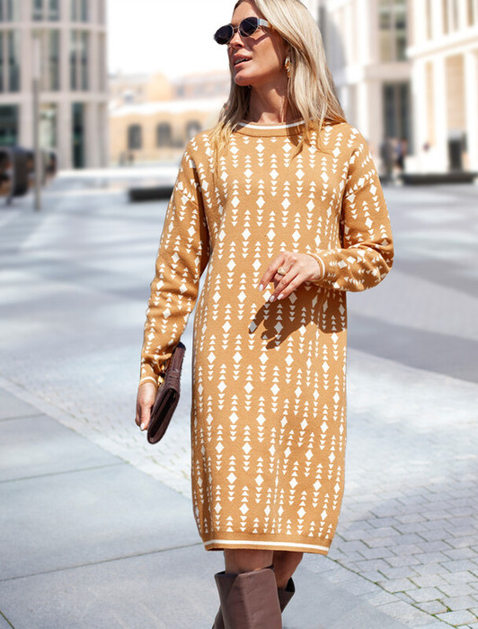 Заказать Vilatte Платье жаккардовой вязки с кашемиром D32.111 бежевый-белый