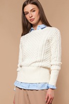 Совместные покупки Уфа Женская одежда Джемперы, свитеры, водолазки — Vilatte Повседневный джемпер из хлопка с акрилом D39.474 белый