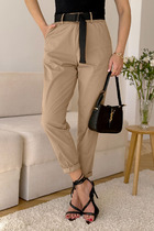 Прямые брюки выполнены из трикотажа джерси. Модель дополнена боковыми карманами и поясом на резинке сзади. Заутюженные стрелки визуально вытягивают силуэт. Изделие хорошо держит форму, отлично тянется и почти не мнется во время использования. Идеальный вариант в офис или в повседневный классический стиль.