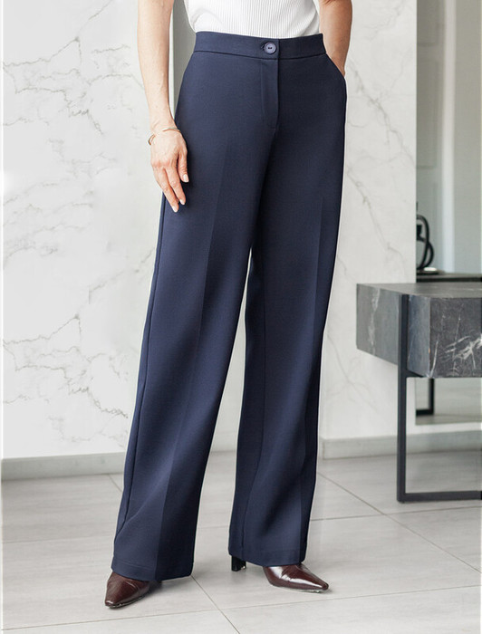 Совместные покупки Уфа Женская одежда Брюки — Vilatte Прямые брюки из джерси на резинке сзади D44.155 темно-синий