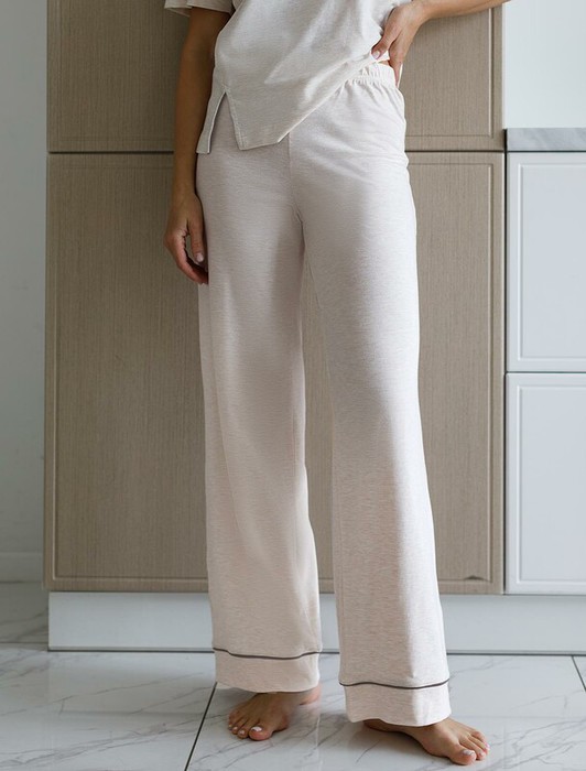 Совместные покупки Уфа Женская одежда Домашняя одежда — Vilatte Прямые брюки из эластичного хлопка с контрастным кантом D44.120 бежевый