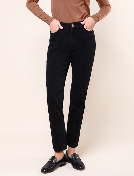 Джинсы  прямого силуэта сшиты из эластичного денима средней плотности. Универсальные и практичные для любого времени года с кроссовкамии, туфлями и сапогами. На верх с классической блузкой, водолазкой и свитером крупной вязки.