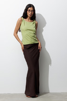 Стильное решение для смелых и уверенных образов. Юбка черного цвета, свободного кроя с плавные волнами на ткани, создает эффектный силуэт, подчеркивая женственность и динамику движения. Пояс стандартной ширины с обтачкой из мягкой изнанки обеспечивает комфорт при носке, не сковывая движений. Небольшой разрез до колена добавляет лёгкую дерзость и удобство при ходьбе. Качественная искусственная кожа придает юбке благородный блеск и износостойкость, сохраняя при этом легкость и эластичность.