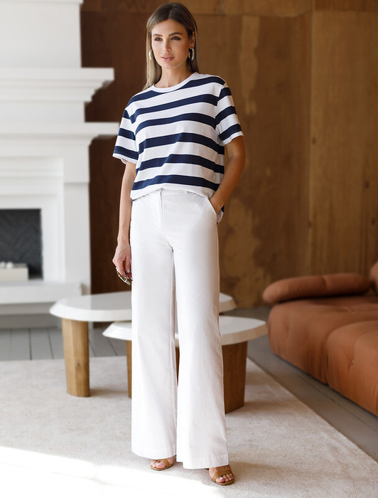Совместные покупки Уфа Женская одежда Брюки — Vilatte Широкие прямые брюки из плотного поплина D24.204 белый