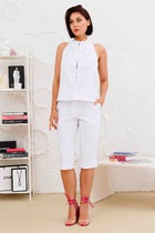 Шорты выполнены из плотного лиоцела. Добавление синтетических волокон в составе изделия предотвращает сминаемость. Эластичный пояс на резинке фиксирует изделие не сковывая движений. Есть дополнительные шлевки для ремня. Свободная модель дополнена боковыми карманами и металлическим логотипом бренда. Для создания завершенного образа сочетайте в костюме с топом D23.058, блузкой D28.054, D29.238, D29.239 и D29.240